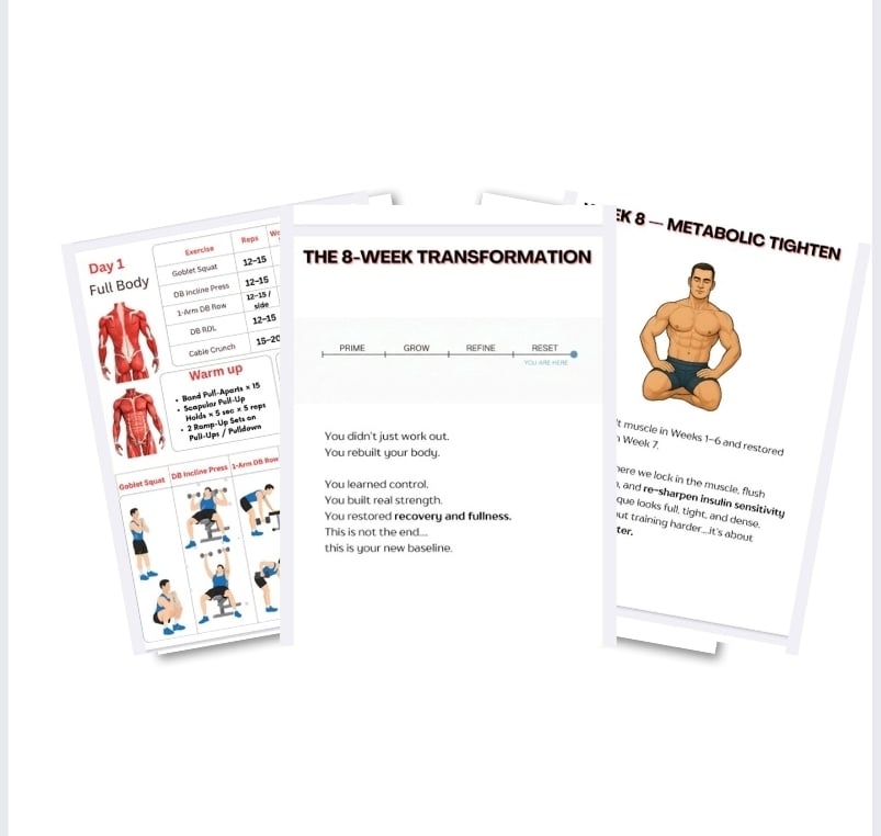 8-Week Training Protocol: 4–5 days/week. Every set, rep, tempo & rest already laid out.
